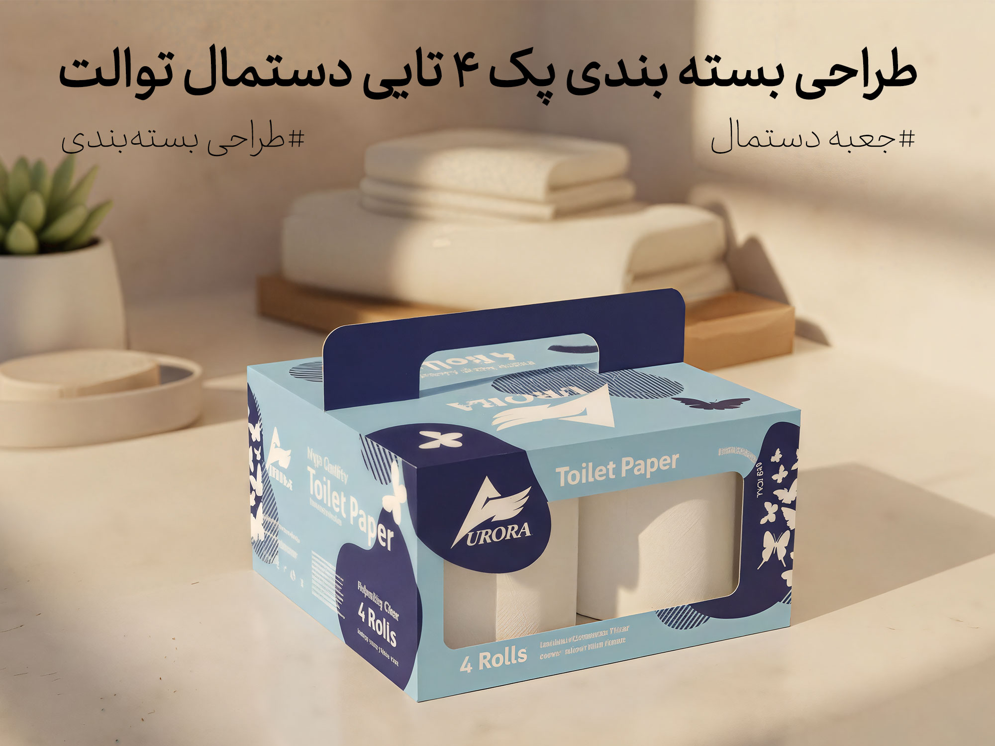 طراحی جعبه پک چهار تایی دستمال توالت اورورا نمونهای از هماهنگی میان ساختار عملکردی بستهبندی و هویت بصری دقیق است. این پروژه توسط طراحی بسته بندی نگاره نفیس اجرا شده و یک محصول روزمره را به تجربهای ماندگار و کاربردی تبدیل کرده است. این بستهبندی با طراحی هوشمندانه دسته حمل از بالا، پنجرههای جانبی دقیق و هویت گرافیکی مدرن، داستانی از پاکیزگی و لطافت را روایت میکند.