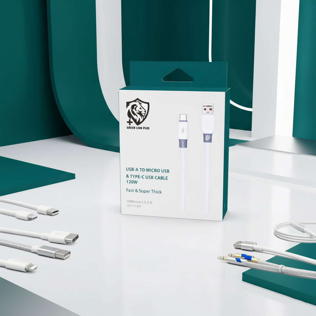 در بازار رقابتی لوازم جانبی موبایل، جایی که ظاهر مساوی است با درک مشتری، طراحی بسته بندی نگاره نفیس مجموعهای از طراحیهای طراحی جعبه کابل شارژر موبایل را برای برند Green Lion Plus خلق کرد. این پروژه شامل پنج مدل کابل مختلف بود که همگی دارای یک ساختار و طراحی گرافیکی واحد بودند. هدف اصلی، ایجاد هماهنگی بصری در عین انعطاف برای تمایز هر مدل بود.